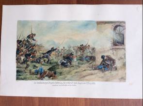Detailreiche Schlachtendarstellung. Leicht vergilbtes Papier/ Karton. Die Darstellung selber im einwandfreien Zustand.