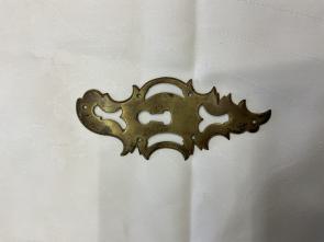 |  |  | Türbeschlag Messingblech, Barock deutsch um 1750 L: 15,3 cm, B: 6 cm     Zwischenverkauf vorbehalten !     Antiquitäten, Antike Möbel Kunsthandel, Restaurierung Andreas Vollstedt Hollerstraße 9 24782 Büdelsdorf a.vollstedt@gmx.de 01705767308 |