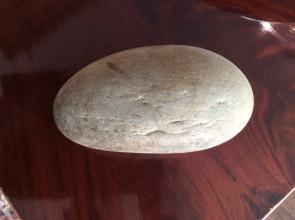 Faustkeil aus der Steinzeit. Fundort Büdelsdorf in Schleswig-Holstein. Übersät mit Arbeitsspuren, geschliffene Oberfläche.