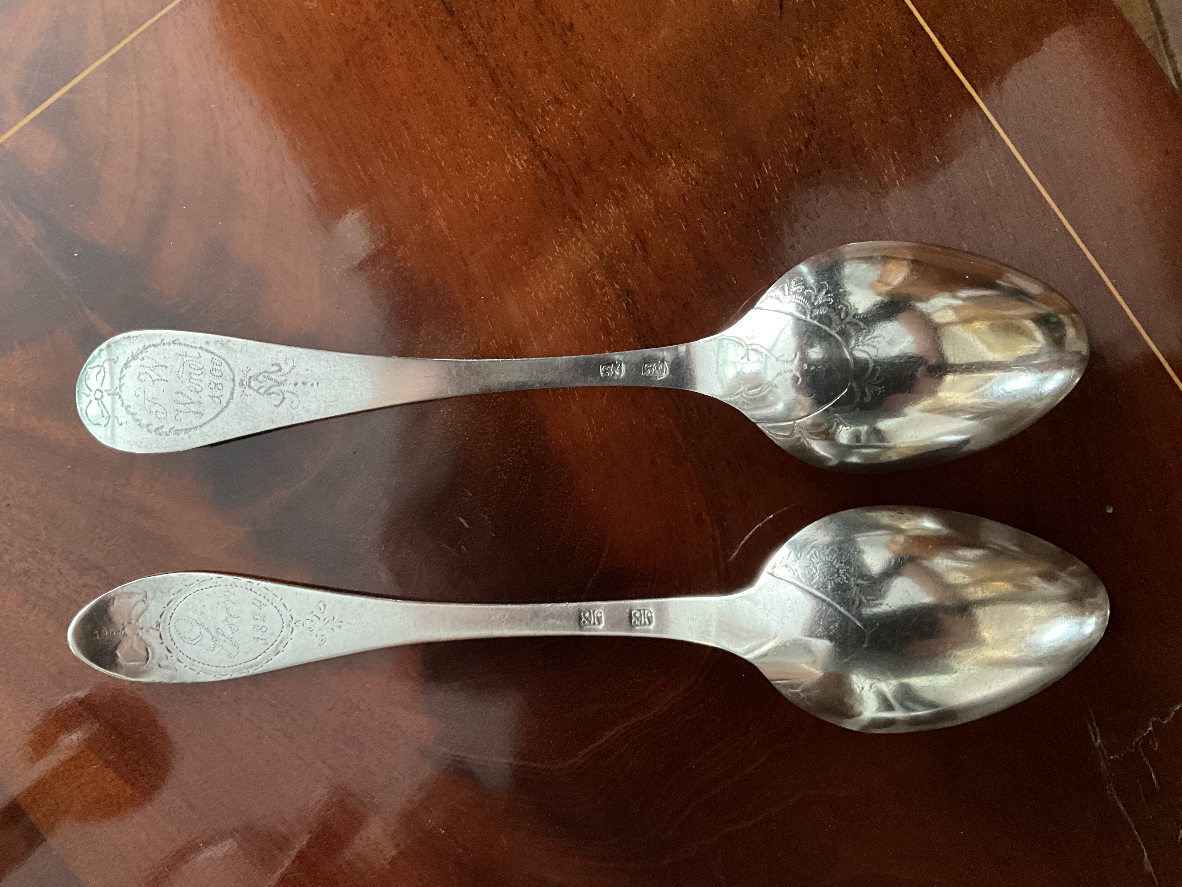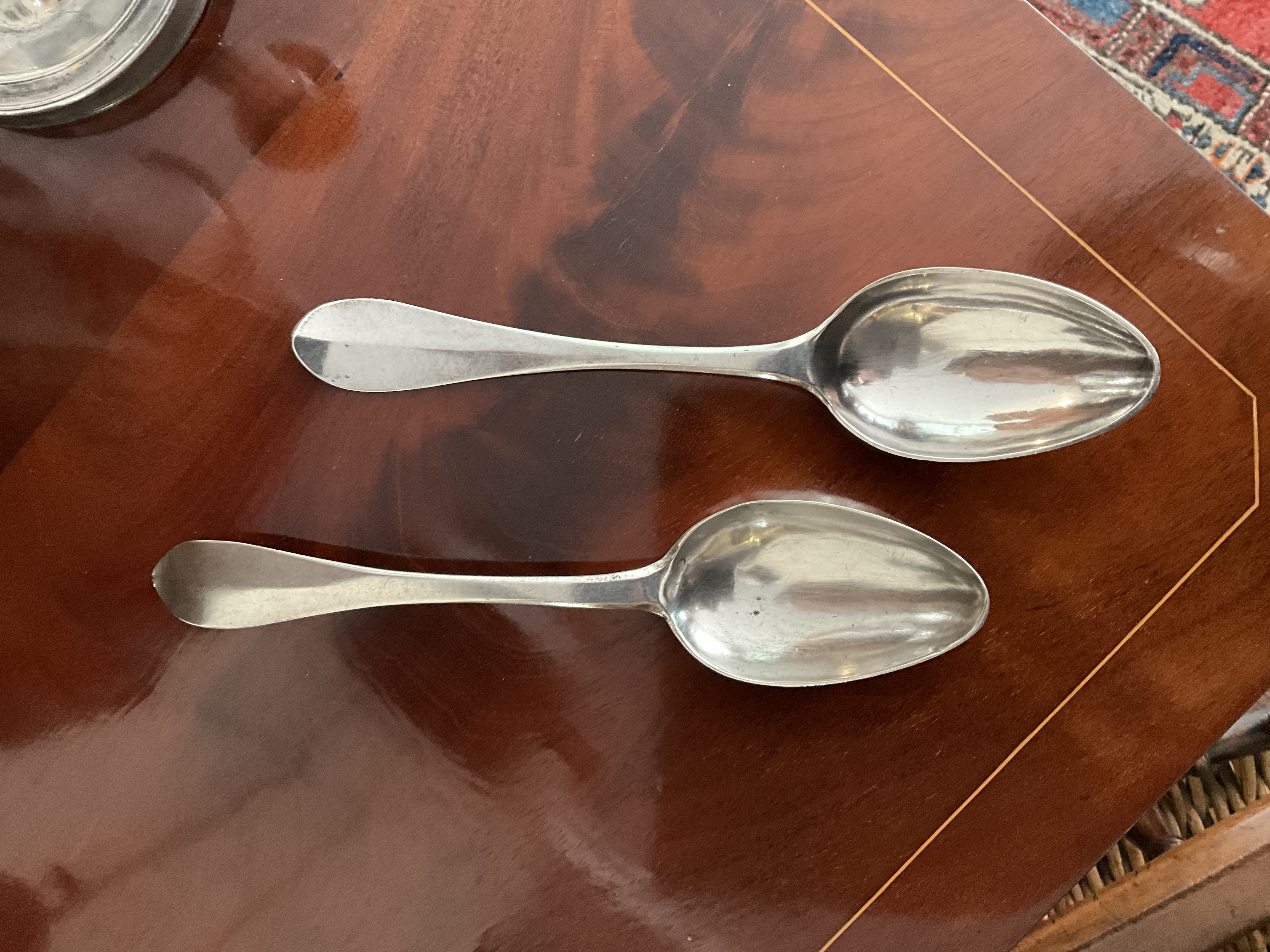 Zwei schöne Empirelöffel aus Silber, datiert 1800, Eßlöffel, Gewicht 48 Gramm