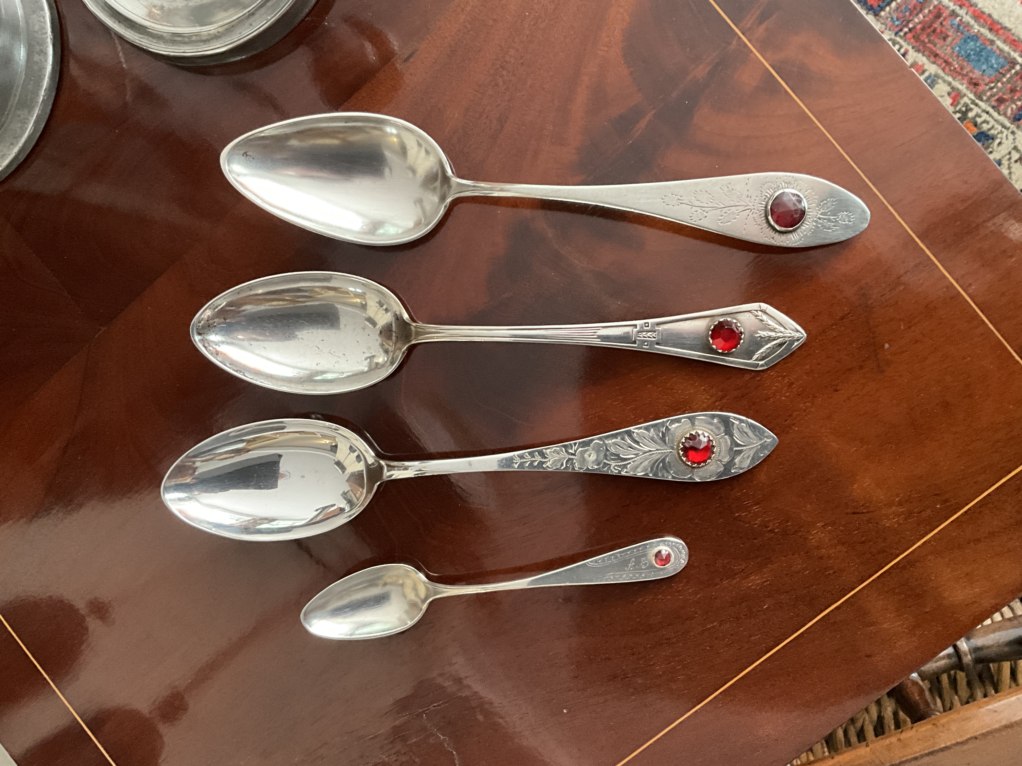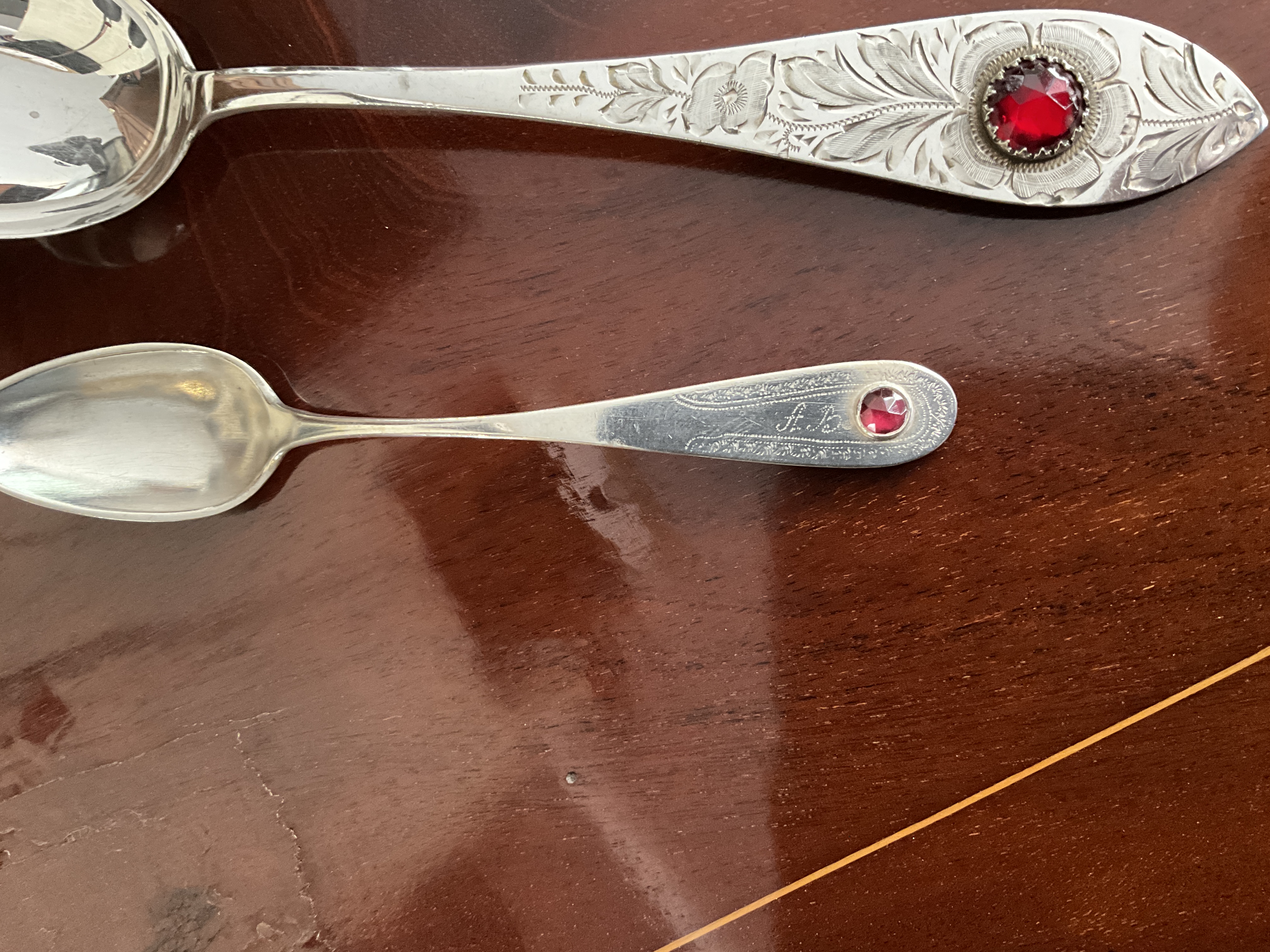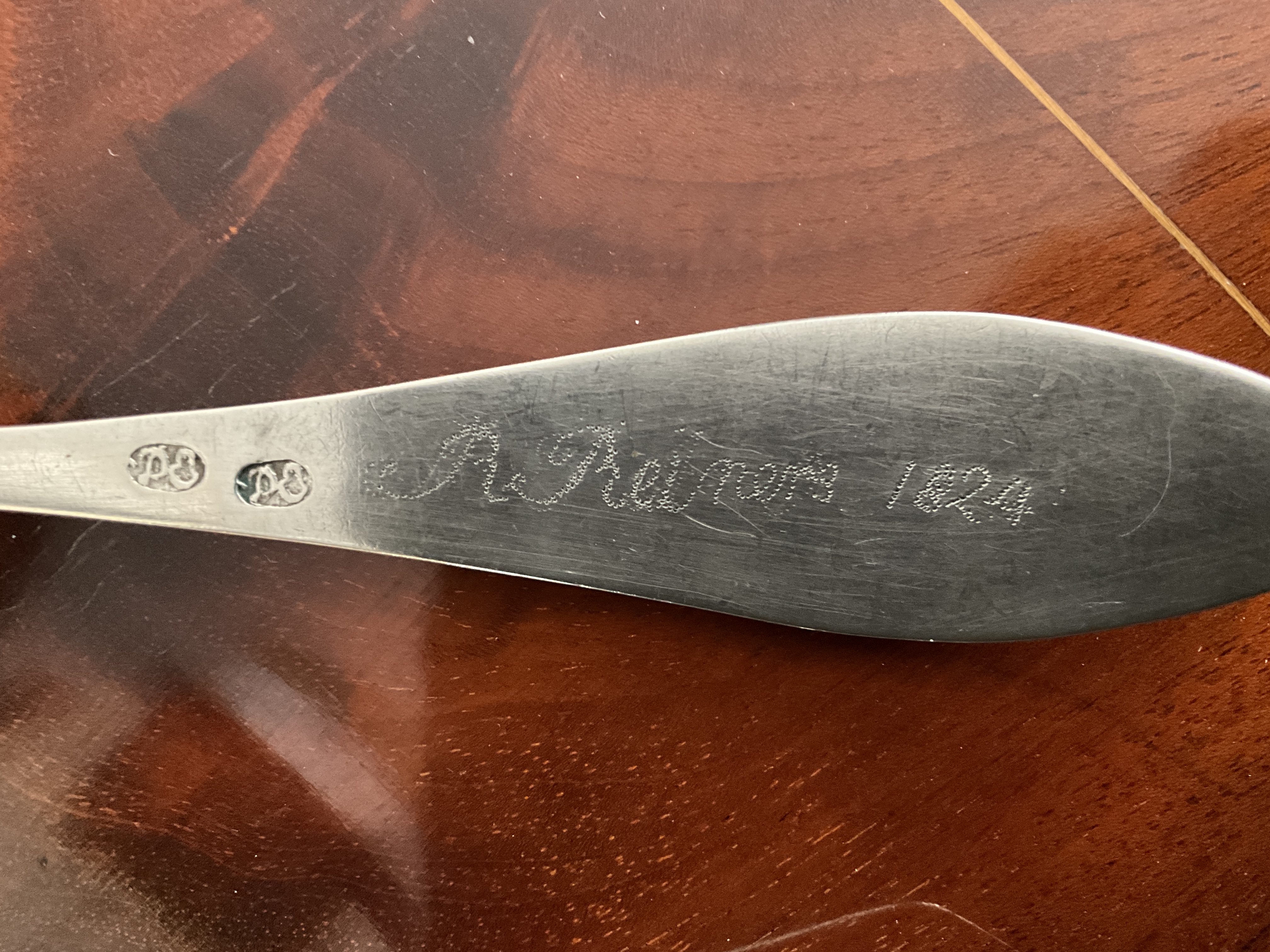 Empire/ Biedermeierlöffel mit Glasstein, Silber, datiert 1824