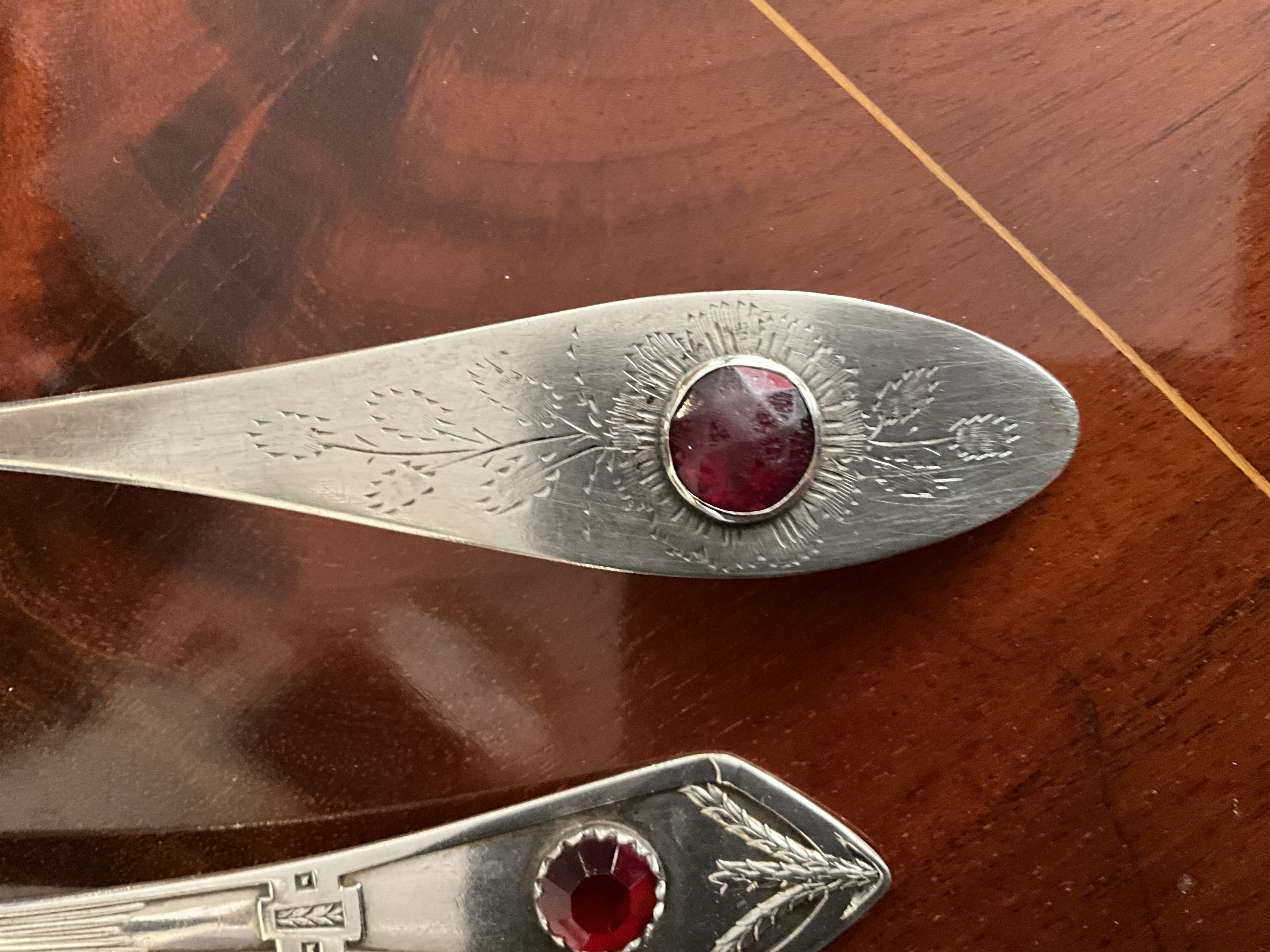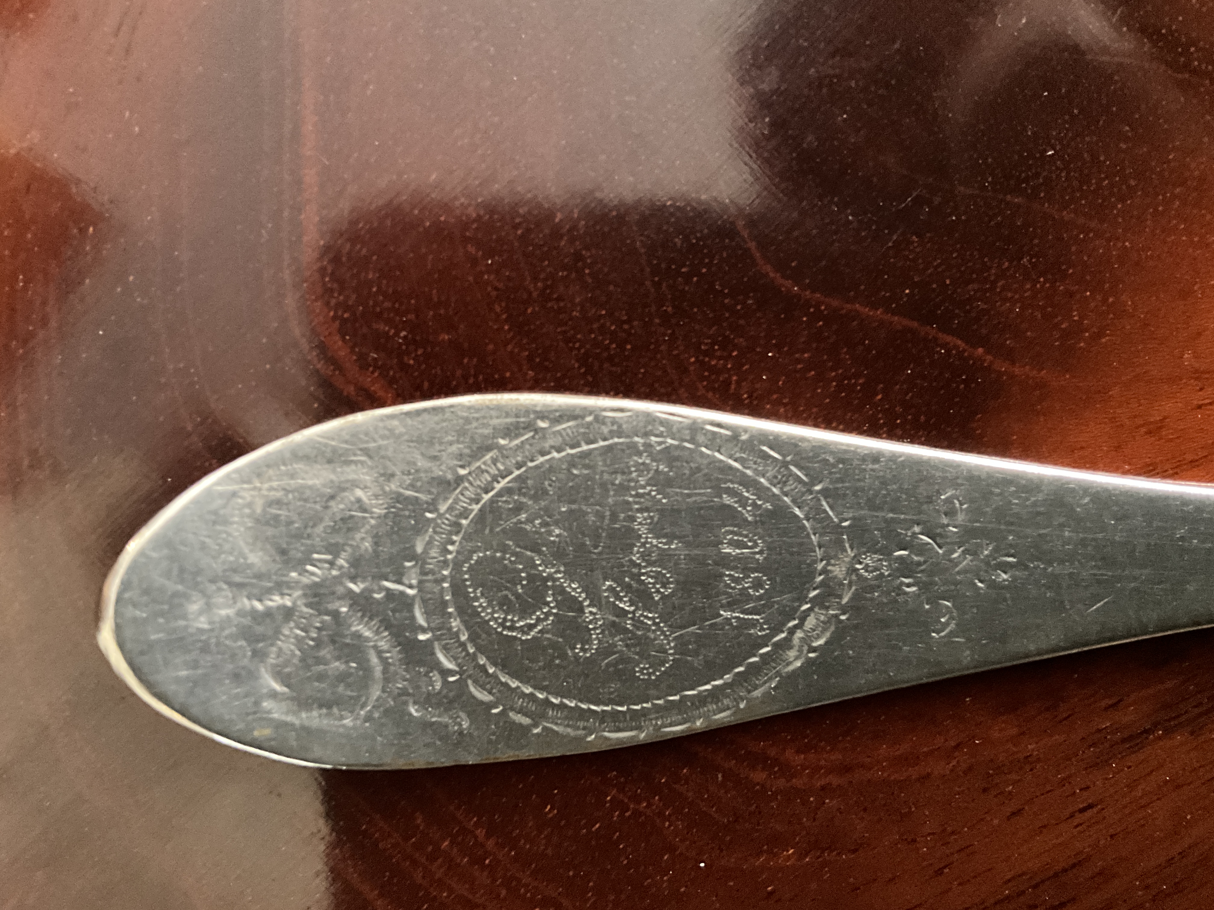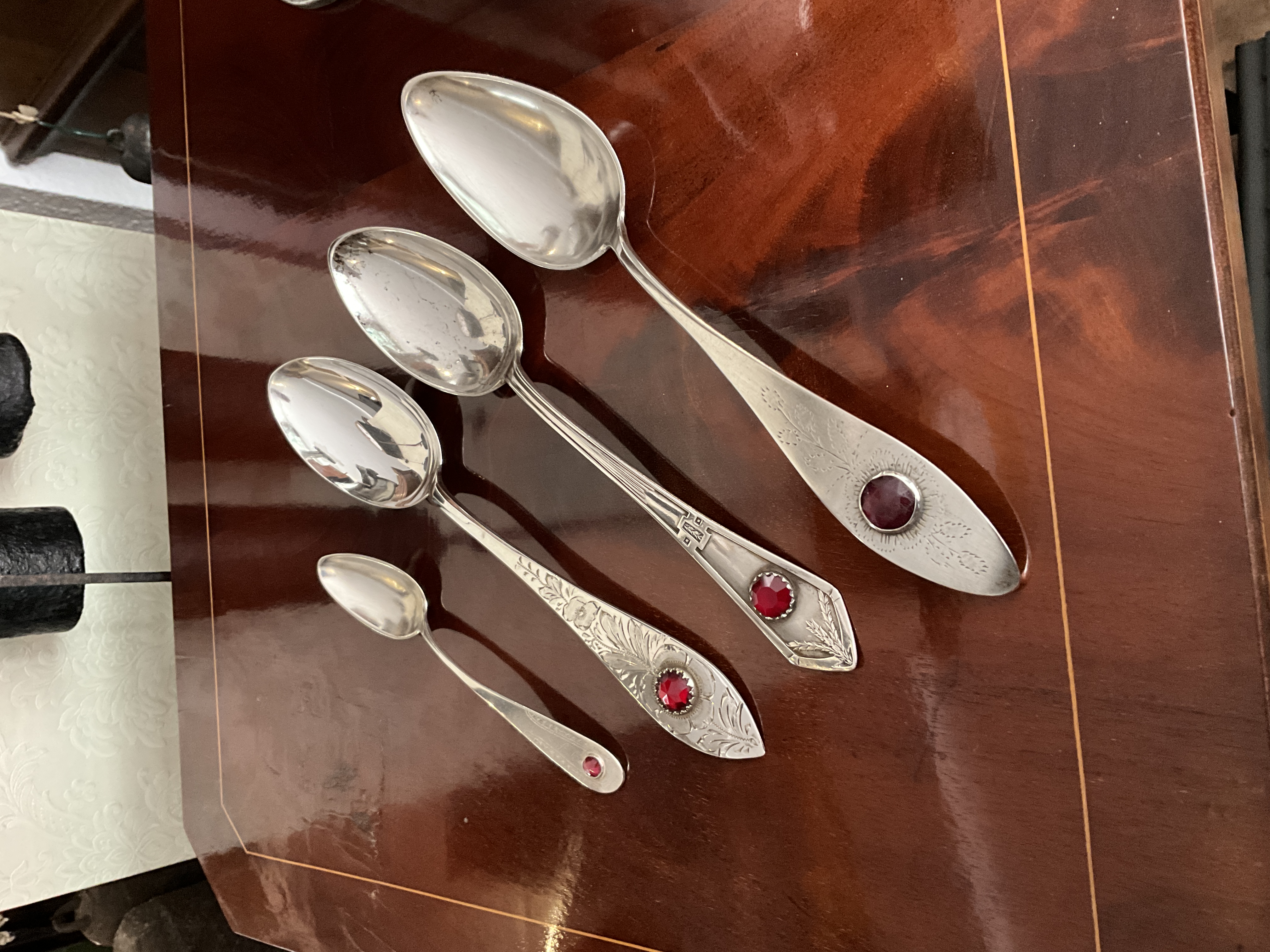 Empire/ Biedermeierlöffel mit Glasstein, Silber, datiert 1824