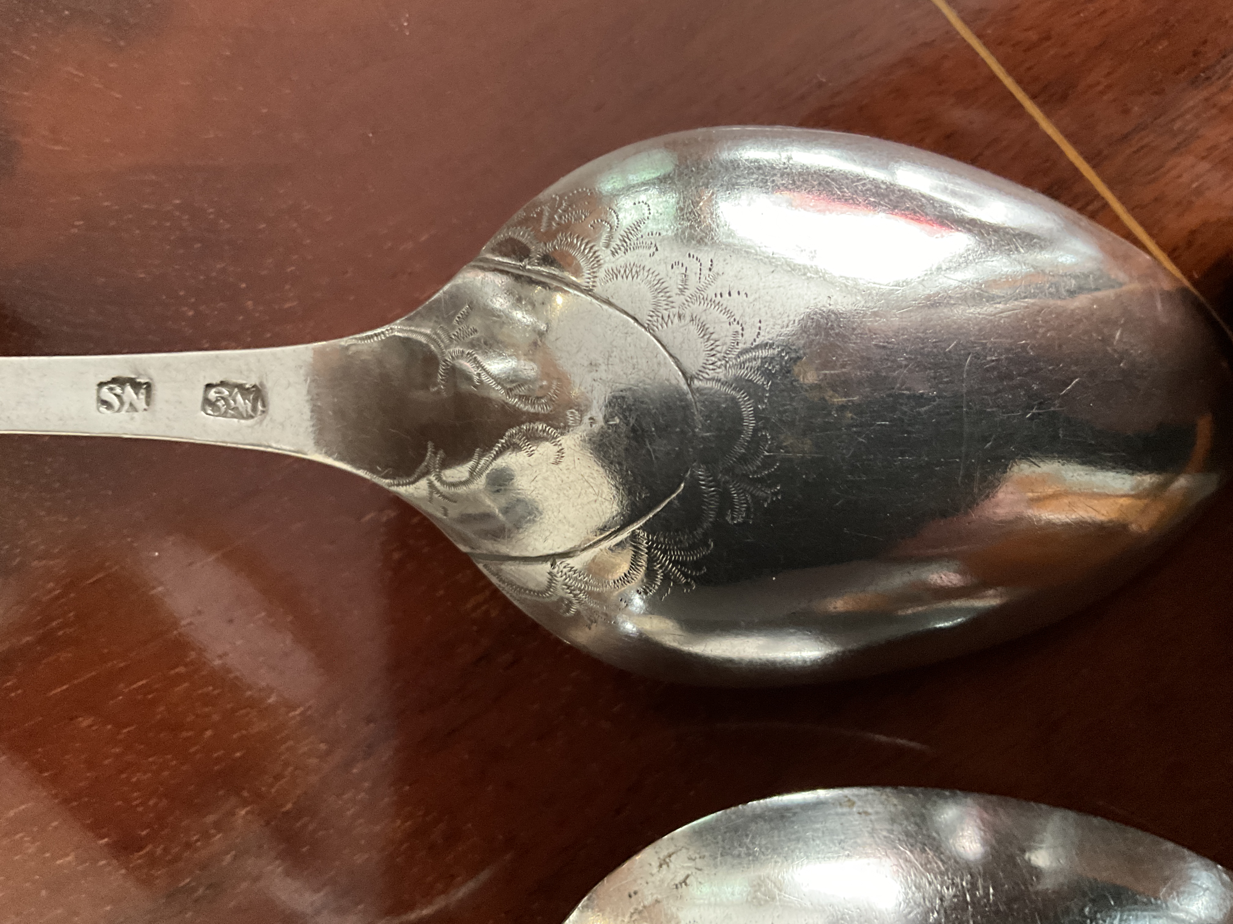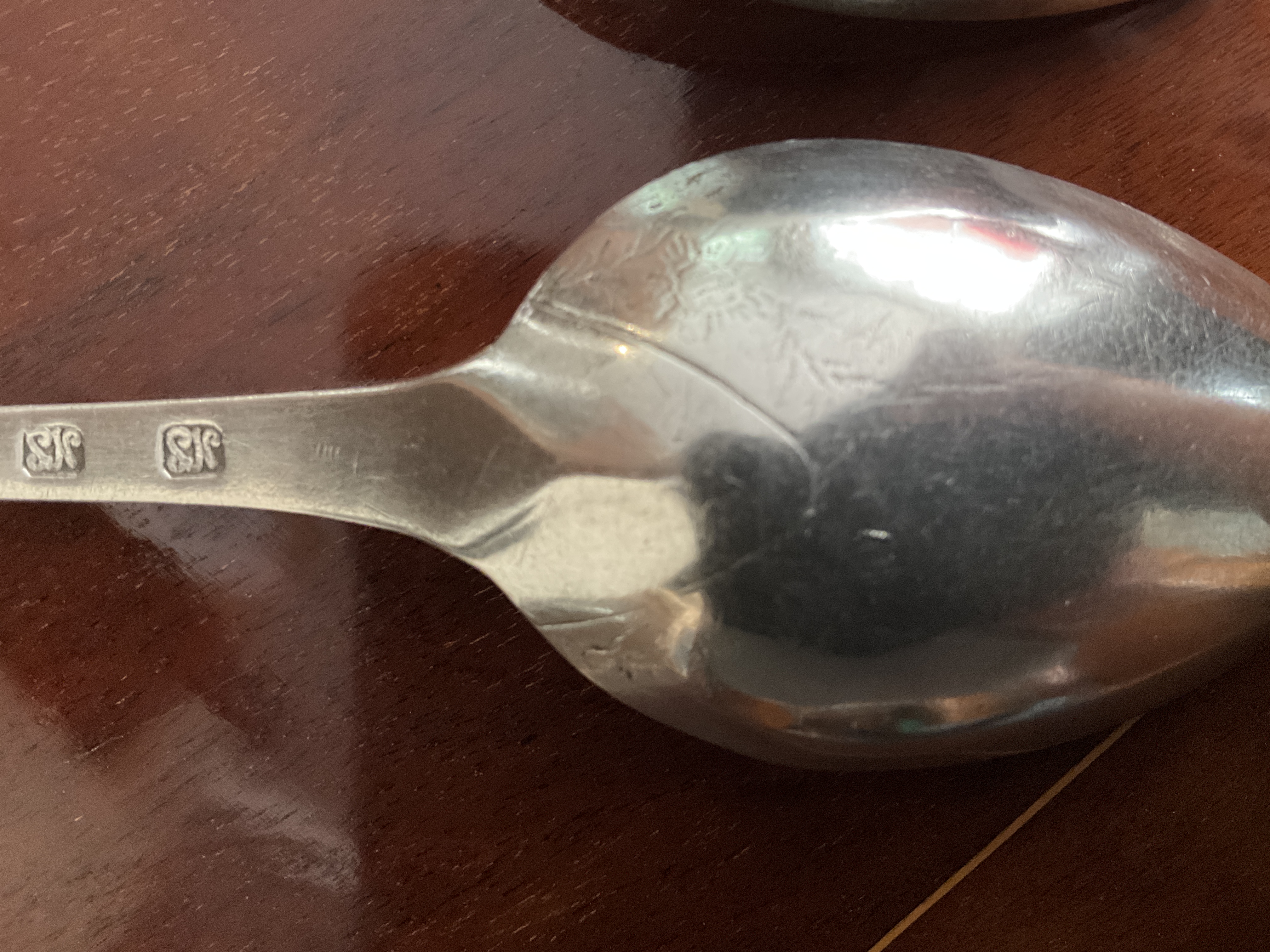 Beide Löffel stammen von einer Hofstelle in Hohn bei Rendsburg. Einer der Löffel erscheint auf den ersten Blick Nachdatiert auf 1824. Beide Laffen schön verziert !