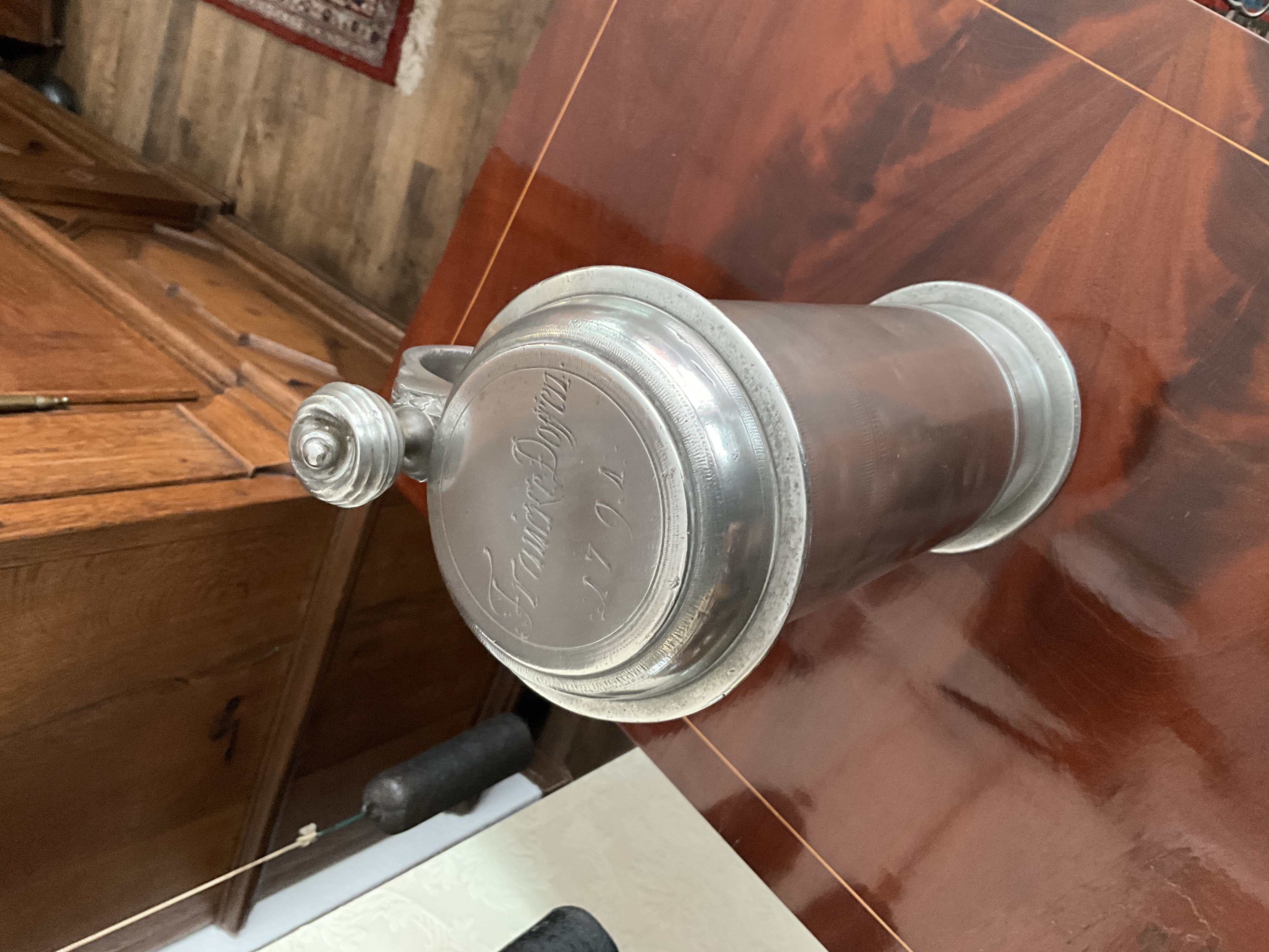 Der Krug ist auf dem Deckel datiert: „Francke Dossen“ 1791.