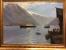 Freytag-Koeppen, Clemens, Gemälde, Öl auf Leinwand, um 1900 Passagiere beim Ausbooten von einem Dampfer der Hamburg Süd oder Hapag auf Nordlandfahrt. Im Vordergrund ein norwegisches Gebäude, eine Dampfbarkasse mit Flagge des deutschen Kaiserreichs und schon angelandeten Passagieren.