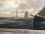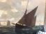 Öl auf Leinwand, Kutter vor hohem Himmel und Leuchtturm.