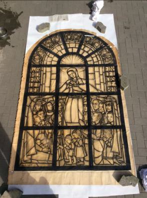 Es handelt sich um einen Entwurf für ein Kirchenfenster der Künstlerin Ilse Paula Elisabeth Baitsch-Landen. Sie studierte in München,Paris und Malmö. Diesen Entwurf fertigte sie im Alter von 18 Jahren ! Die Ausführung ist erstaunlich beeindruckend und zeigt das enorme Talent dieser Künstlerin.