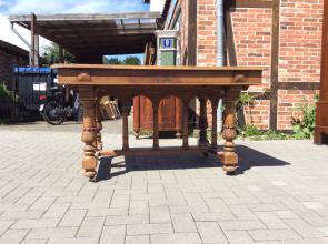 Maße: B: 102,5 cm, L: 135,5 cm, H: 76 cm Voll ausgezogen mißt der Tisch 460 cm !