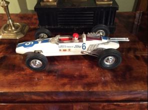 Rennwagen der Firma GAMA, Modell Ford/ Lotus. Originalzustand - bespielt mit sehr geringen Mängeln. Kunststoff, Metall und Bereifung aus Gummi.