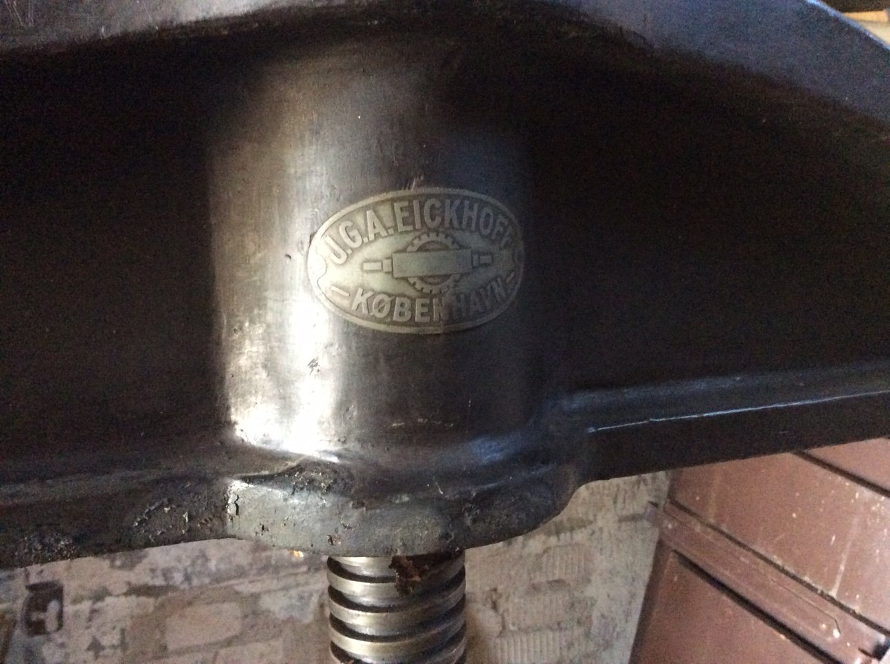Buchpresse/ Papierpresse für Buchbinder oder Drucker. Schönes historisches Stück mit wirklich nur leichtem Flugrost auf den Flächen. Hersteller: J.G.A. Eickhoff in Kopenhagen.