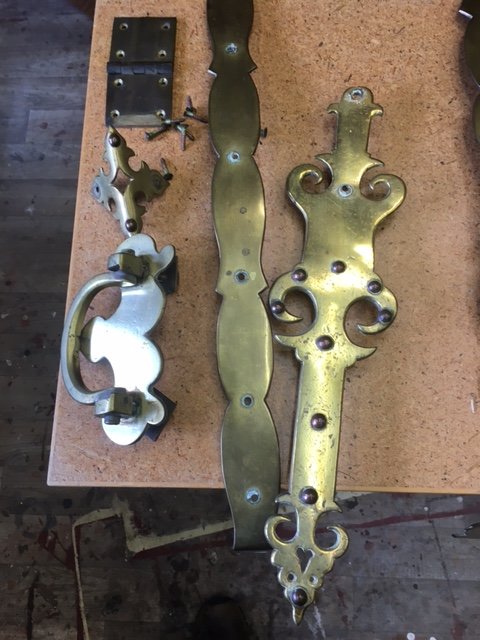 Truhenbeschläge, Truhenbeschlag, Bänder, Schloss, Handhaben, Messingnägel, Kugelkopfnägel, Messing, | € 550.00 |