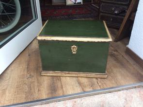 Kleine Truhe aus dem Biedermeier, Holz grün gefasst, um 1820.